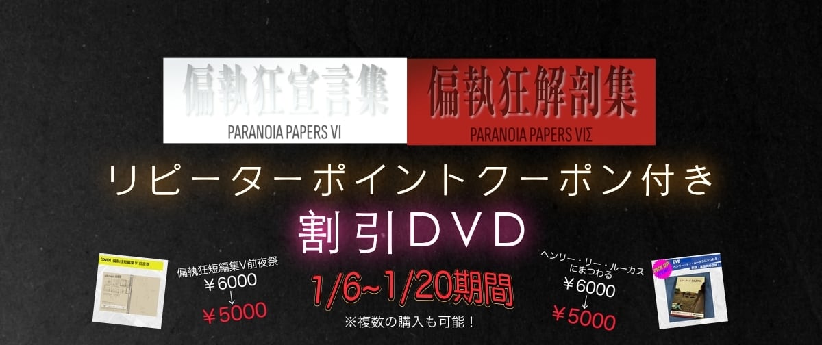 対象DVDお買い求めで「偏執狂宣言集」「偏執狂解剖集」で利用できるポイントクーポン券を封入いたします